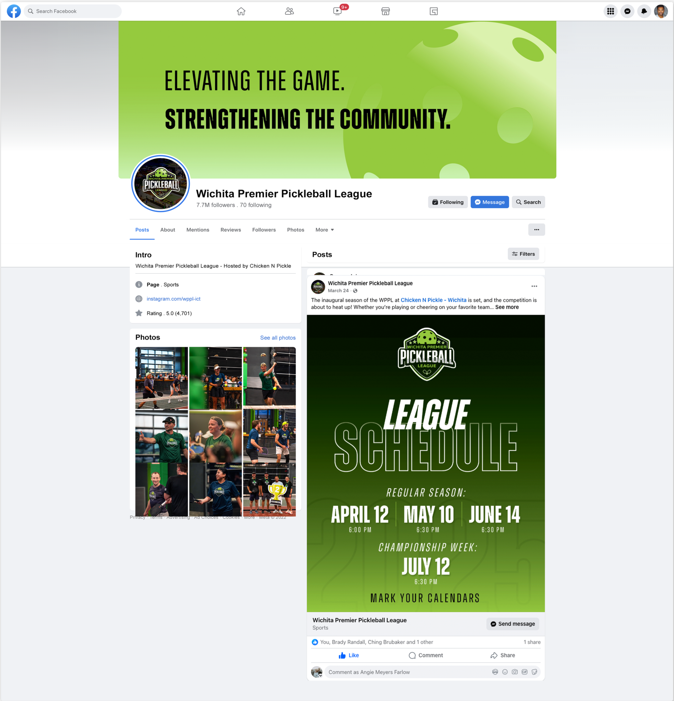 The Wichita Premier Pickleball League (WPPL), is a competitive amateur league hosted by Chicken N Pickle. The project included developing a visual identity including team and league logos, and social media content promoting matches, standings, and players. The design balanced professional sports aesthetics with pickleball’s playful energy, tying in subtle Chicken N Pickle branding. The result was a cohesive, high-energy identity that boosted engagement, attendance and community excitement around Wichita’s growing pickleball scene.